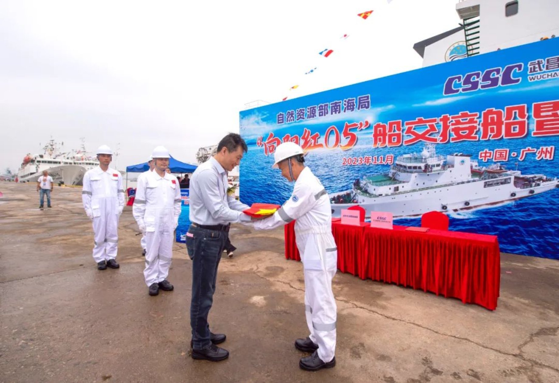 11月29日,由中国船舶集团武昌造船为自然资源部南海局建造的“向阳红05”科考船提前一个月顺利完成交接入列仪式!武昌造船民船产能持续释放,生产计划准点运行,新造船模式又一次得到成功验证。