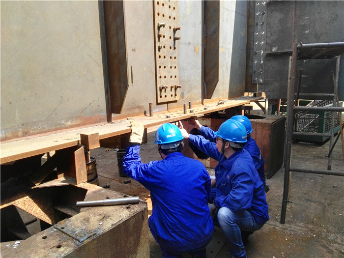 该项目底板单元件材料为薄板,底板板材厚仅为10mm,U肋厚仅为6mm,采用无坡口形式,焊接变形控制难度大。为保证产品质量精度,施工单位采用一系列的反变形和小电流焊接措施,确保了产品的精度,一次报检合格率达到100%,获得监理一致好评。(图文/王亮)
