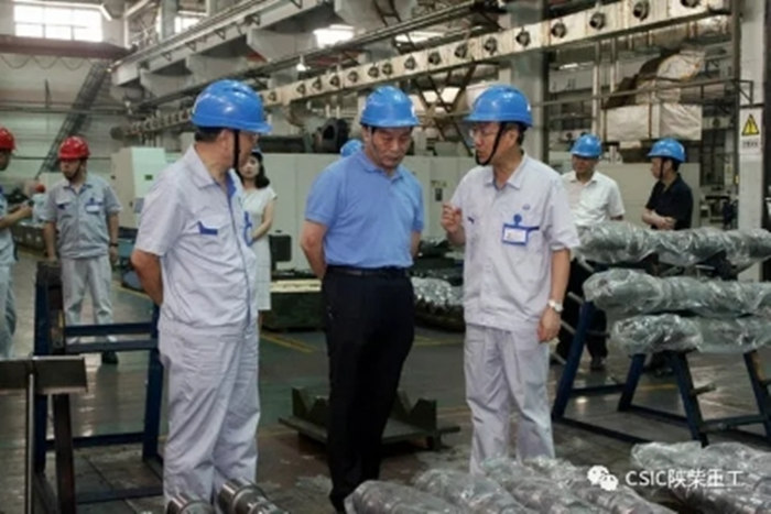 杨志钢一行在陕柴重工领导陪同下,参观了陕柴厂史馆和机加一分厂、装配试验厂,实地了解了陕柴发展历程和生产能力。