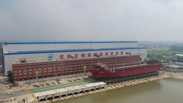 6月1日上午9时28分,由武船集团海工院设计、双柳武船承建的13000DWT甲板运输船2号船驶离双柳武船基地2号系泊试验码头,前往南通瑞泰基地进行最后的交付工作。当天下午3:00整,13000DWT姊妹船3号船沿着双柳基地滑道,顺利下水。