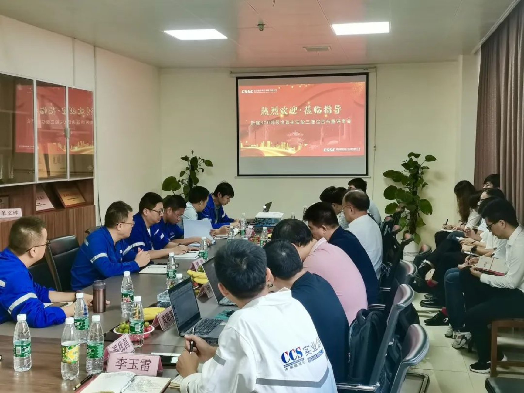 8月22日,新建300吨级渔政执法船顺利通过全船三维综合布置和内装效果方案设计评审。连云港市海洋与渔业综合行政执法支队、武汉船舶设计研究院有限公司、中国船级社实业有限公司评审专家、项目三总师及中国船舶集团武昌造船船艇公司相关领导参加评审会。