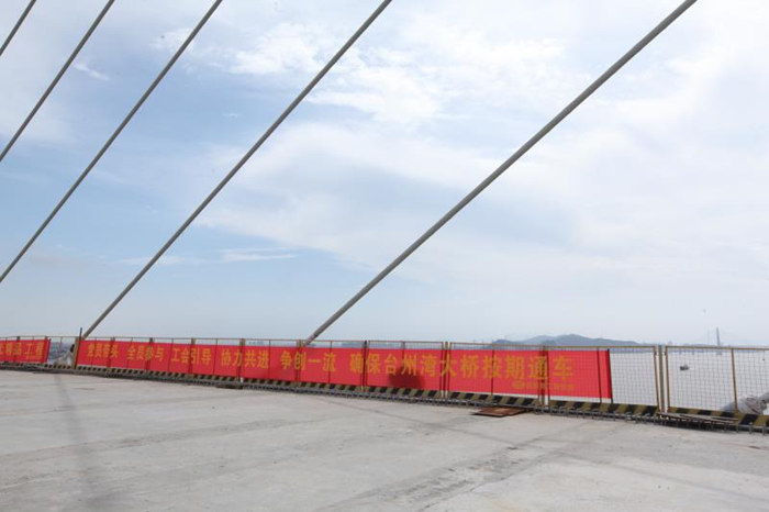 台州湾大桥主桥为主跨488米的双塔双索面叠合梁斜拉桥,全长948米,是台州沿海高速公路的控制性工程,它的顺利合龙,标志着大桥主体工程建设已进入收官阶段。