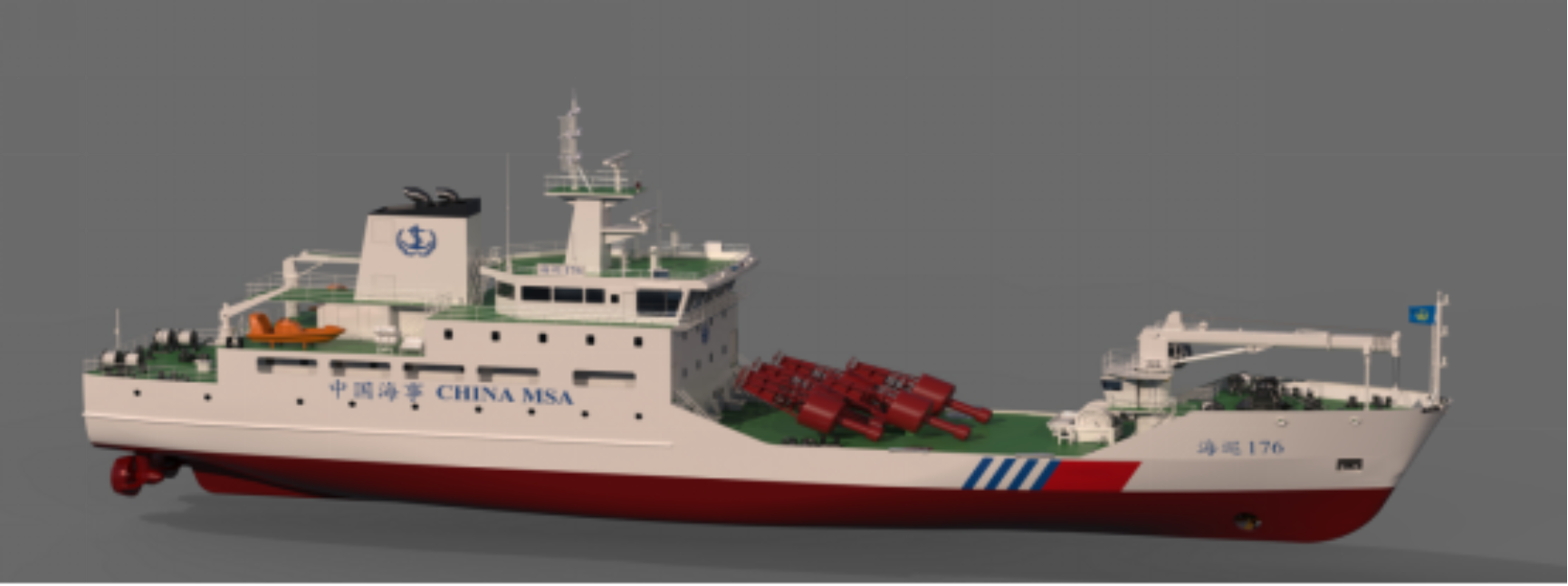大型航标船是南海航海保障中心第一艘大型航标船,主要承担南海海区各港口、航道的浮标抛设、起吊和维护任务,从事航标巡检、维护保养、应急抢修工作,并能兼顾南海值守人员交通、岛礁补给以及无线电导航信号监测等任务。该船采用全电力推进系统,设三台主柴油发电机组、两台全回转推进器、首部侧推器和动力定位系统。