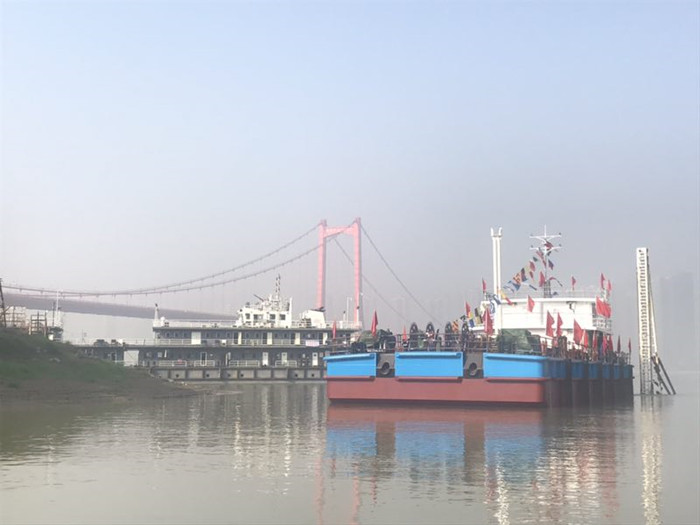 40米多功能趸船主要作为武船双柳基地挖泥船作业时的移动码头,与挖泥船绑扎系缆联合工作;还可以完成他船下水后牵头、压载水和水下物资转运工作,提高新船下水时的压载时效,解决目前新船下水时间长、牵头和水下物资转运困难的现状;配备的一台直臂吊,可满足公司特殊使用需求。