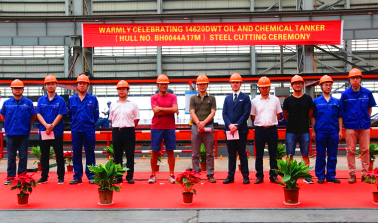 2018年8月27日,武船集团海工院为意大利Marnavi船东打造的“14620DWT不锈钢化学品船”在双柳武船基地举行了1#船的开工仪式,意大利船东代表、意大利船级社中国区审图经理、武船集团代表、海工院代表出席了开工仪式。