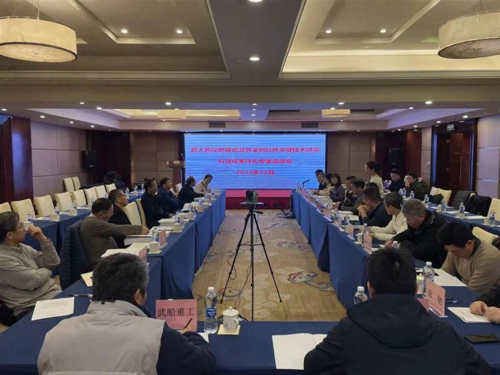 12月13日,中国船舶集团武昌造船重工公司参建的湖北交投十淅高速(湖北段)丹江口水库特大桥“超大跨径地锚式混合梁斜拉桥关键技术研究”项目验收暨科技成果评价会在武汉召开。湖北省交通厅、湖北技术交易所邀请7位国内行业顶级专家学者组成验收评价专家组。专家组鉴定该项目成果整体达到国际领先水平,一致同意通过验收。与会的各位领导高度赞扬本项目设计施工的科技创新性、景色融合性、环保性。