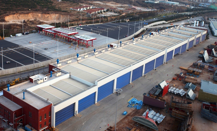 共有四喷、九涂,面积为15840 、辅助机房13662 ;单间主尺度:长30m,宽48m,高13m。
