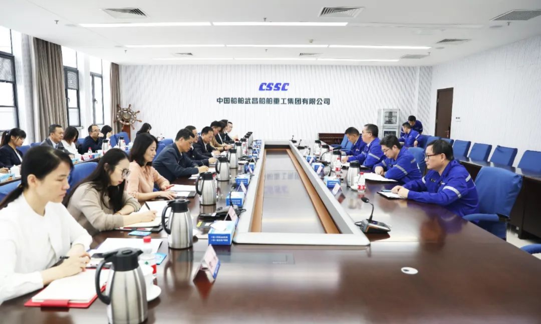 10月10日,武汉市国资委组织武汉石化、武重集团、武汉移动、中冶南方等单位到中国船舶集团武昌造船开展基层党建工作调研观摩活动。武汉市国资委党委副书记、副主任陈红山出席活动并指导,武昌造船党委委员、纪委书记左照海,各相关单位党群部门负责人、基层党支部书记参加活动。