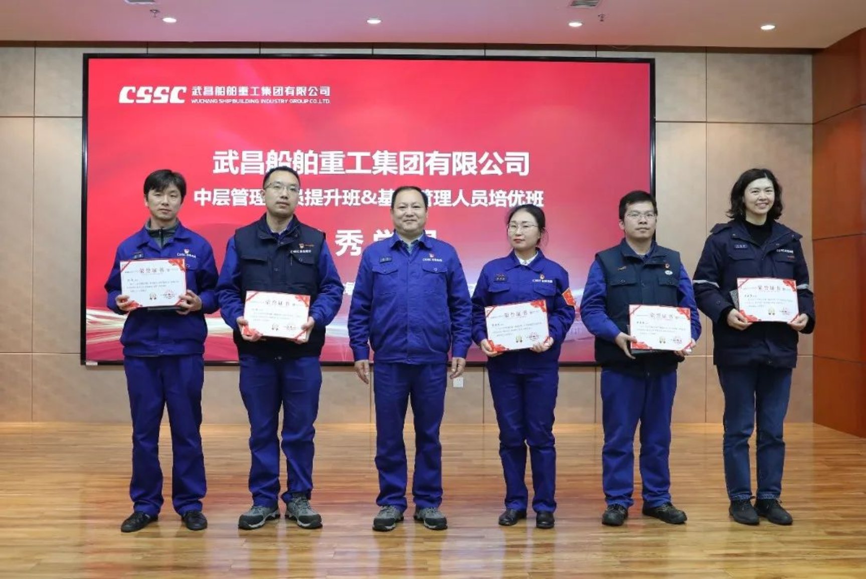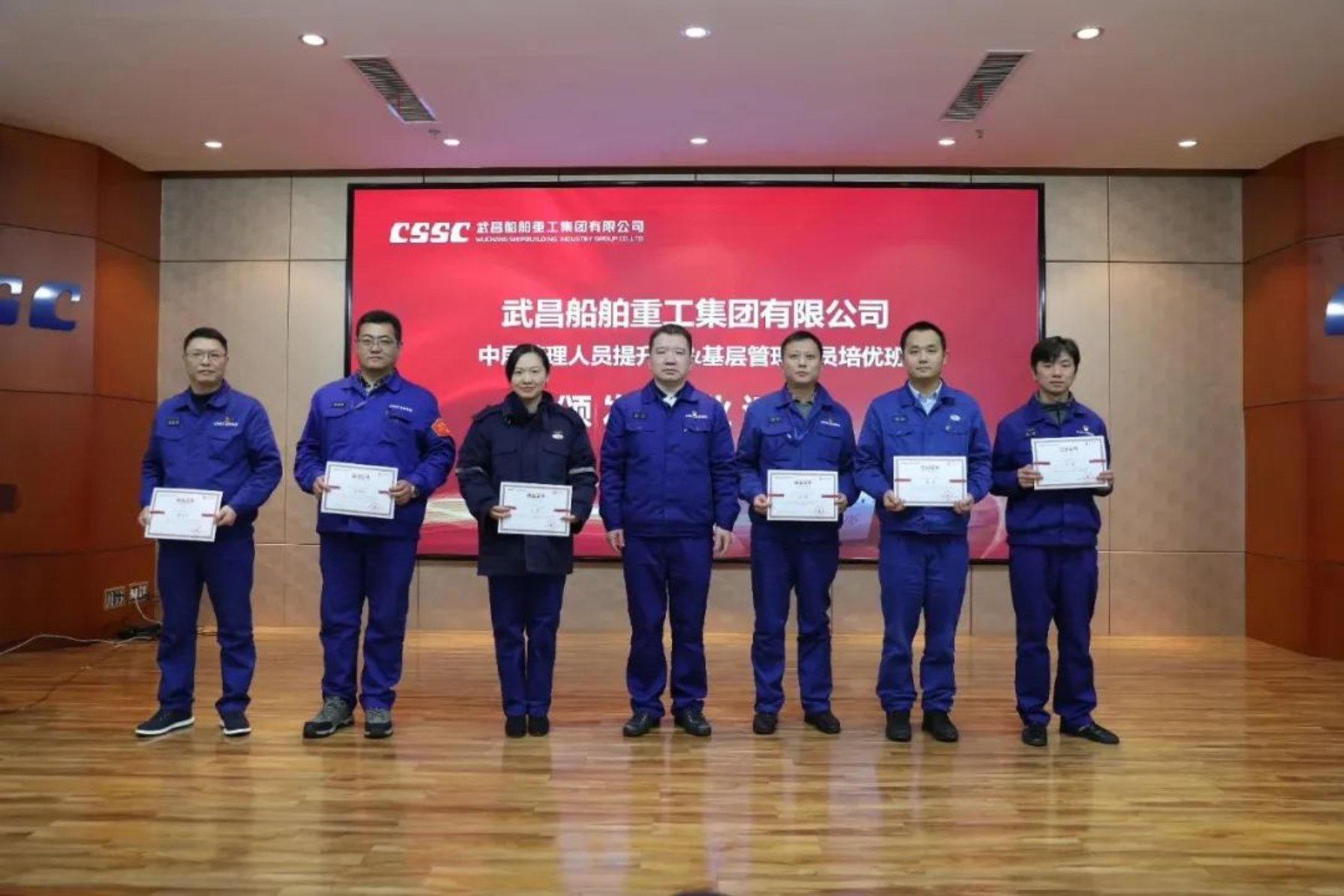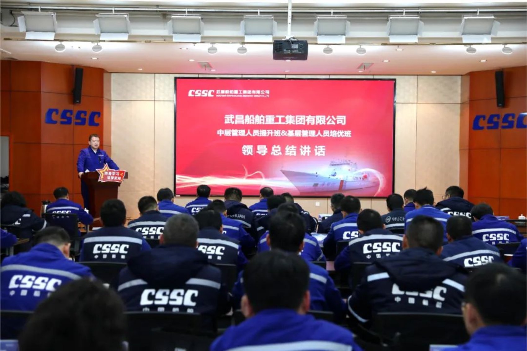 12月14日,中国船舶集团武昌造船首届中层管理人员提升班、基层管理人员培优班结业典礼在创新楼12楼武船讲堂顺利举行。公司党委书记、董事长姜涛,党委委员、副总经理田军,党委委员、副总经理、总工程师唐滢出席结业仪式,培训班全体学员参加结业典礼。
