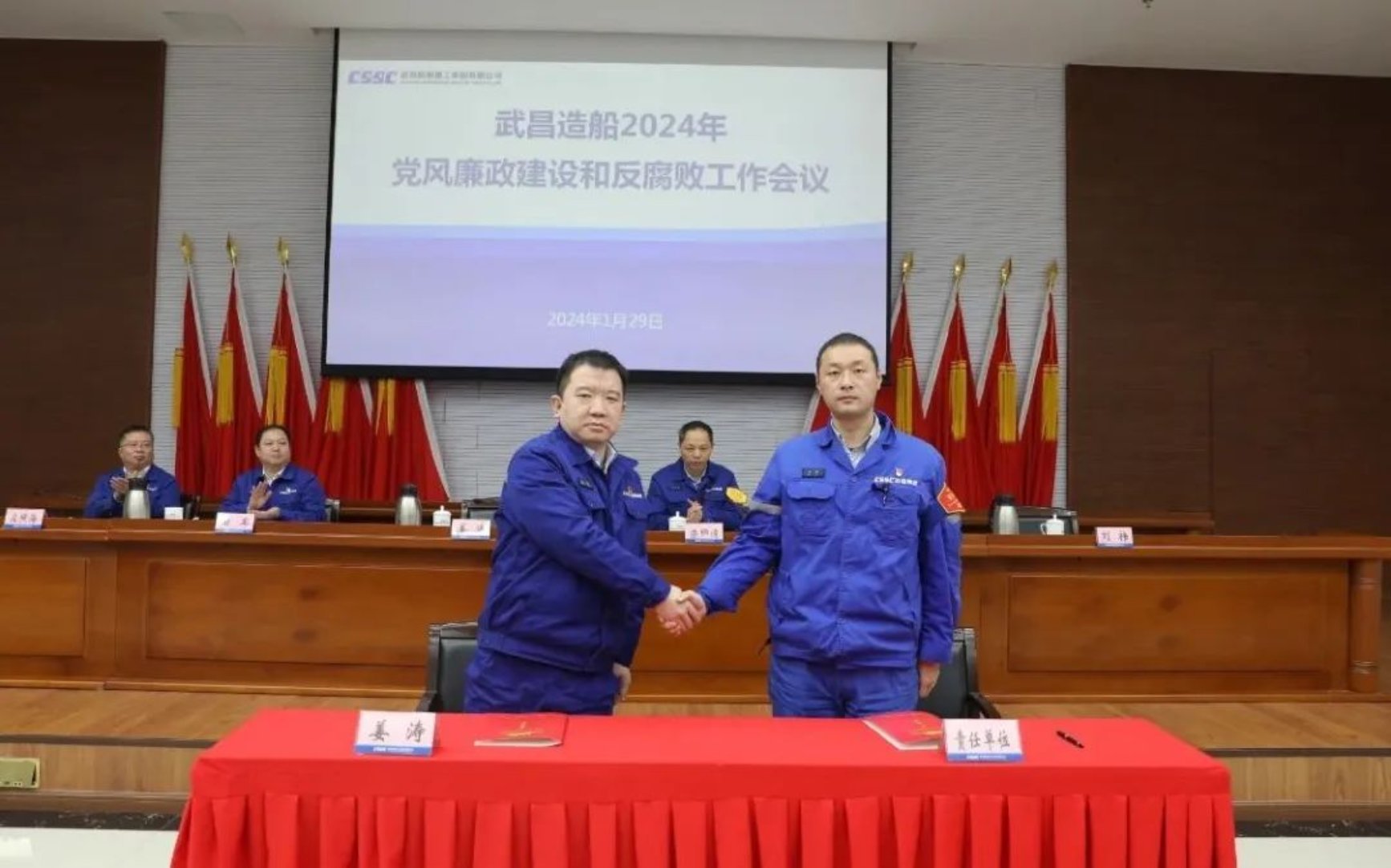 1月29日,中国船舶集团武昌造船召开2024年党风廉政建设和反腐败工作会议。武昌造船党委书记、董事长姜涛出席会议并讲话。党委副书记、总经理梁师清主持会议,并传达了二十届中央纪委三次全会精神和集团公司2024年党风廉政建设和反腐败工作会议暨警示教育大会精神。党委委员、纪委书记左照海作了题为《忠诚履职 担当作为 以纪检工作新质效助推价值创造 为公司改革深化提升 高质量发展提供坚强保障》的工作报告。公司领导田军、陈仲明、刘祎,公司助理级领导、公司纪委委员,中层副职及以上管理人员参加会议。
