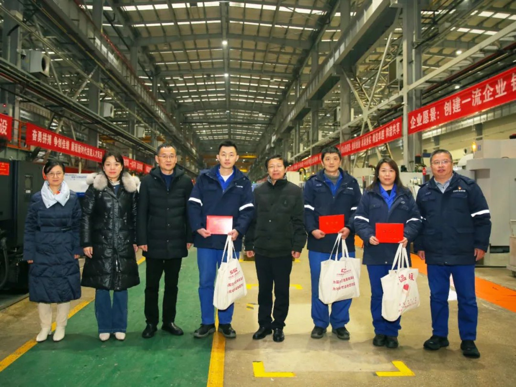 秦少相主席一行在船台总装区、数控加工区等生产区域,亲切慰问了公司一线职工代表,送上慰问金和慰问品,询问了大家的工作及生活状况,对大家立足岗位、拼搏奋斗,为国防建设作出的重要贡献表示感谢,期望大家牢记初心使命,奋勇争先,为全面推进中华民族伟大复兴作出新的更大贡献。