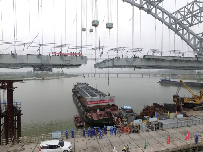 8月31日,随着苏岭山大桥最后一片主梁节段吊装到位,由武船重工股份承建的苏岭山大桥主桥成功实现合龙,兑现了武船集团对襄阳市人民和业主的承诺。武船重工股份副总经理、工会主席姜海松在施工现场全程组织指导主桥节段吊装。