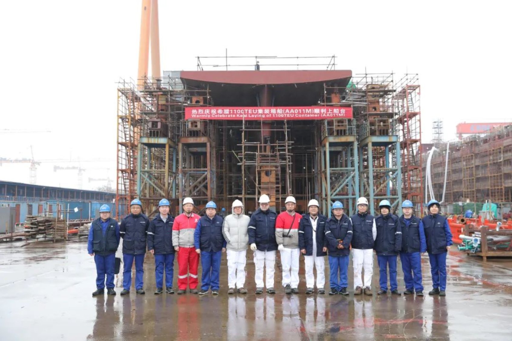 12月18日,由中国船舶集团武昌造船承建的希腊1100TEU集装箱船1号船 顺利完成上船台节点!