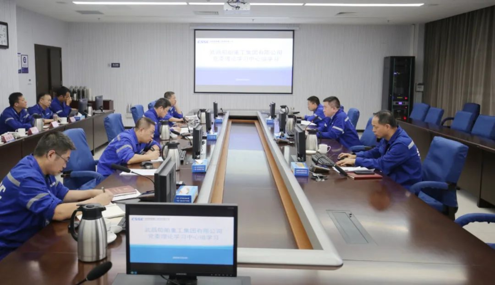 11月4日下午,中国船舶武昌造船党委开展党委理论学习中心组学习,围绕三年特别行动计划和“精益管理”“改革与高质量发展”“效率效益提升”开展专题研讨,公司党委书记、董事长姜涛主持会议,公司领导梁师清、唐滢、陈仲明、左照海、刘祎,公司党委委员李建操参加学习,纪检部、综管部、战略部、企划部、人力资源部、信息部、安保部、保密部等单位主要负责人列席。