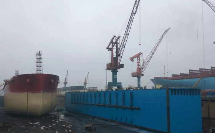 5月15日,武船集团北船重工承制的马士基E系列埃斯特尔集装箱改装项目在北船重工青岛武船大坞完成坞内改装任务并顺利出坞,该船为北船重工修船分厂承接马士基系列改装及常规坞修的第106艘船舶,也是新北船统筹利用大坞资源以来,在青岛武船进行坞内施工的第5艘大型船舶。
