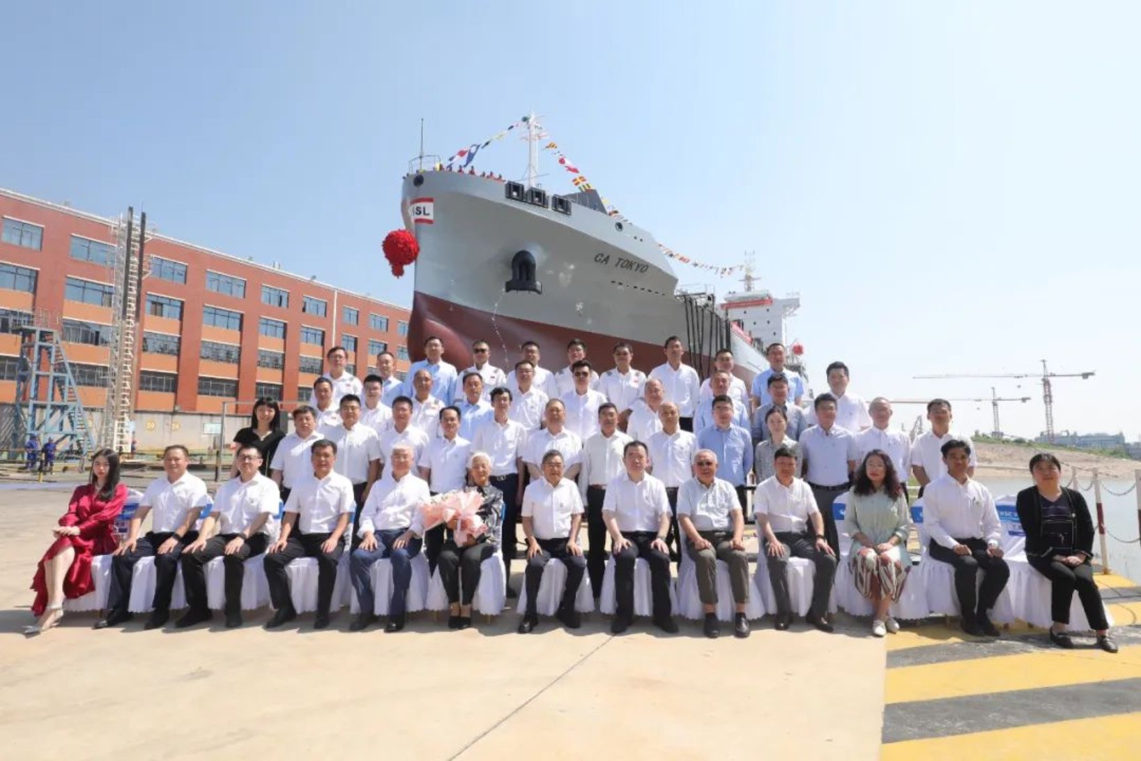 仪式上,教母韩梅女士为该船命名为“CA TOKYO”轮,并送上祝福。