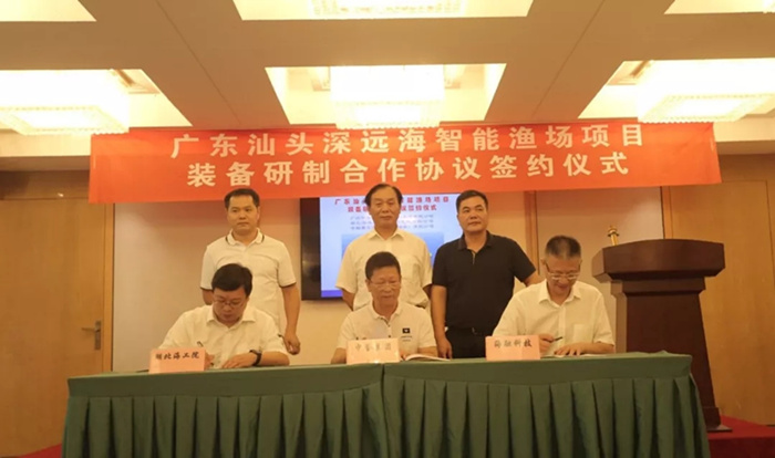 2018年8月22日,武船集团湖北海洋工程装备研究院有限公司及中船重工海融装备(海南)有限公司与广州中誉科技产业控股集团有限公司在广东省汕头市举行签约仪式。在武船集团党委书记、董事长杨志钢,汕头市海洋与渔业局局长周昭勇的共同见证下,与中誉集团签订了《广东汕头深远海智能渔场项目装备研制合作协议》。