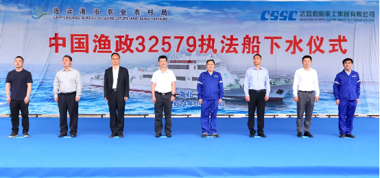 4月16日9点58分,由中国船舶集团武昌造船建造的 新建300吨级渔政执法船“中国渔政32579” 顺利下水!连云港市委副书记、统战部部长卢刚,连云港市农业农村局副局长李宝波,连云港市海洋与渔业综合行政执法支队支队长张长春,武汉市交通运输局港航事业发展中心检验组涂航,武汉船舶设计研究有限公司执行董事黄俊,中国船级社实业有限公司武汉分公司副总经理吴章,武昌造船党委委员、副总经理田军等相关单位领导及嘉宾出席下水仪式。
