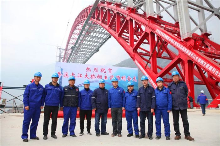 12月27日上午,随着最后一节钢主梁成功吊装就位,由武船重工股份承建的世界最大跨度钢箱桁架推力拱桥钢主梁顺利实现合龙,合龙仪式在桥址南岸举行,大桥业主、设计、总包、监理单位,武船重工股份副总经理、工会主席姜海松及公司项目部成员参加合龙仪式。