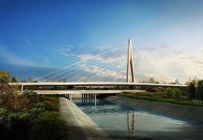 该项目位于郑州市四环线西部(大河路-南四环),规划为快速路,全长21.6km,高架桥为双向八车道。项目南起西四环光明路口向南300m,北至西四环晨星路口向北160m,全长5.95km。桥梁总长300m,桥面总宽49.16m,主桥属独塔双索面斜拉桥,采用梁高3.5m钢箱梁结构形式。