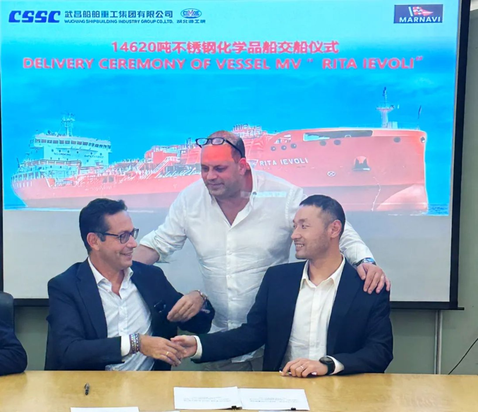 9月15日,武昌造船为意大利船东Marnavi Chem S.r.l建造的14620吨化学品船正式签字交付。